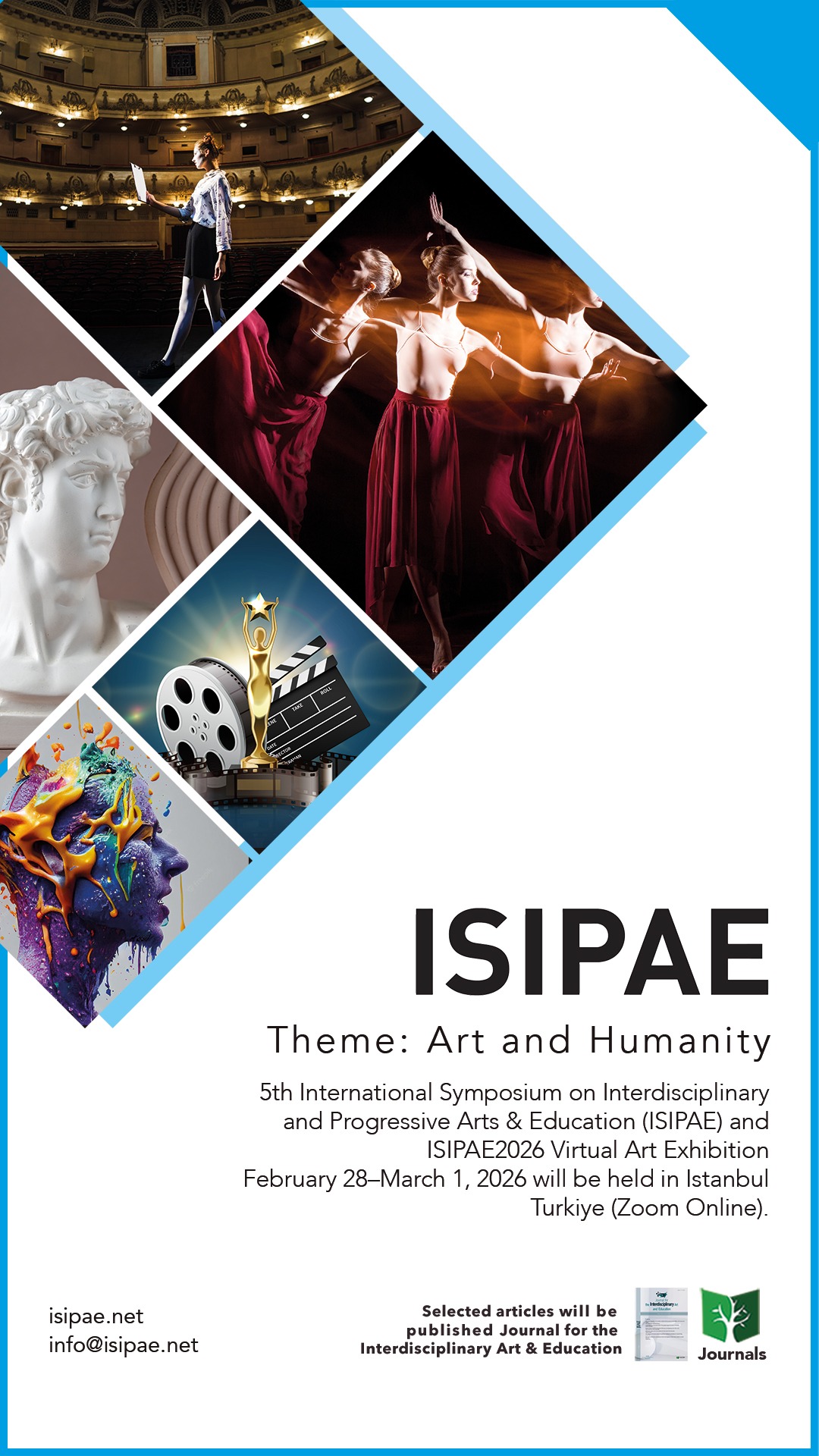 International Symposium on Interdisciplinary and Progressive Arts & Education (ISIPAE) will be the first congress where all problems related to the interdisciplinary performing arts and education will be discussed. The models, research and opinions of future trends of interdisciplinary performing arts & education who study on academicians in this field will be shared regularly on this platform every year.