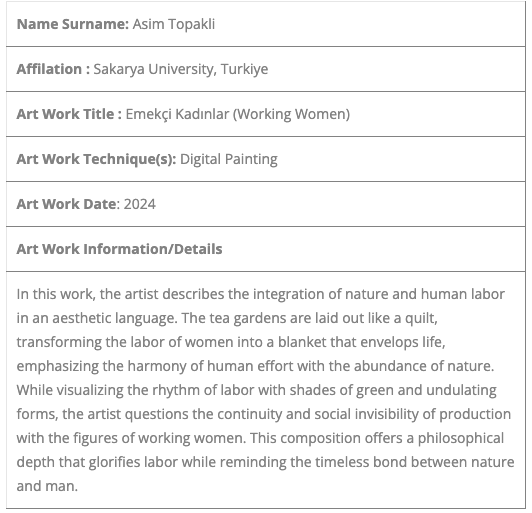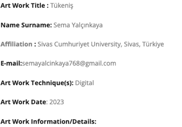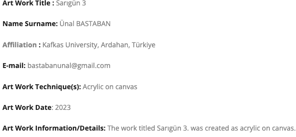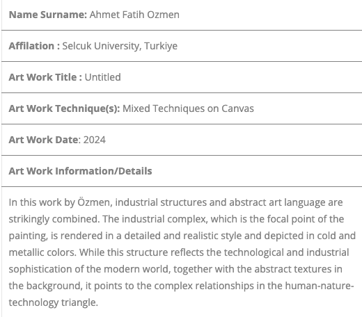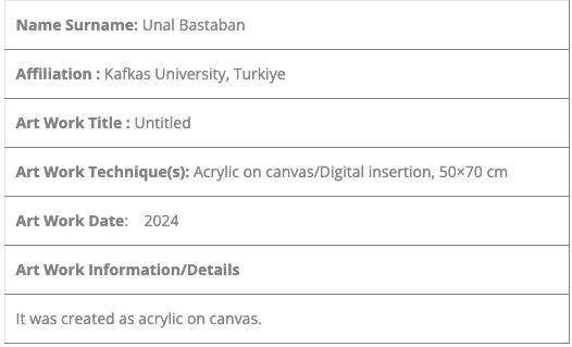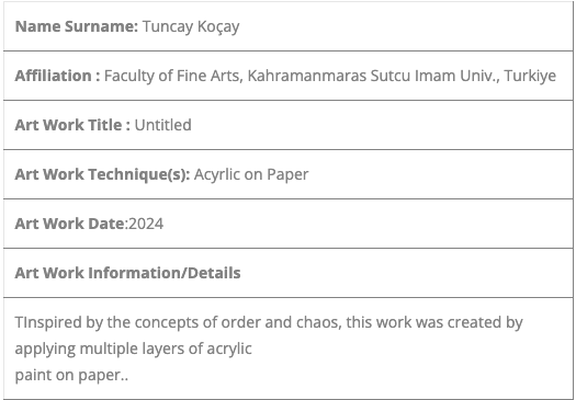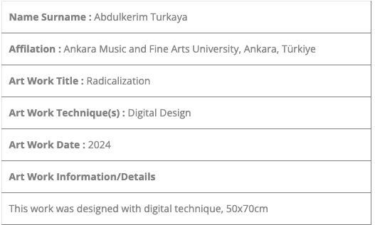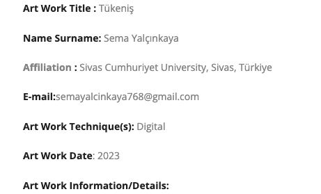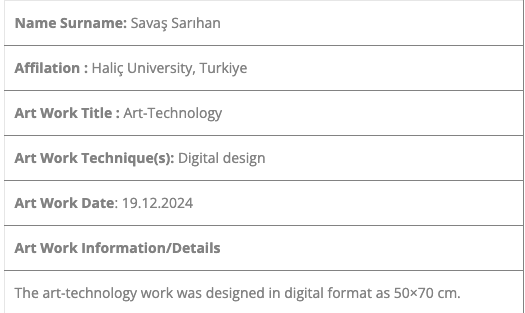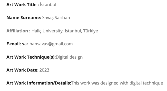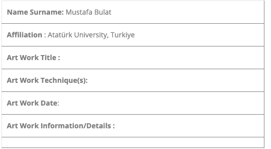 Here, we briefly explain the process for participating in the ISIPAE Virtual Art Exhibition Form congress. First, download the ISIPAE Virtual Art Exhibition Participation Form and Virtual Art Work/Performance Exhibition Participation Form here. Prepare your research according to the specified standards.